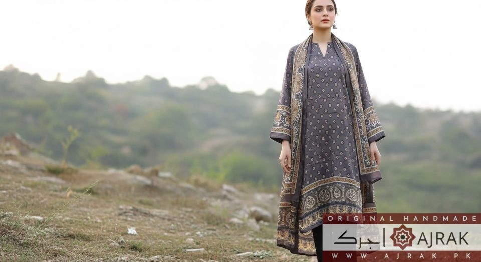 Each suit is handmade by skilled artisans, using traditional block-printing methods and natural dyes that preserve both heritage and sustainability. The detailed border and harmonious patterns bring out the artistic rhythm of Sindh’s age-old textile culture while maintaining a graceful, contemporary silhouette.
